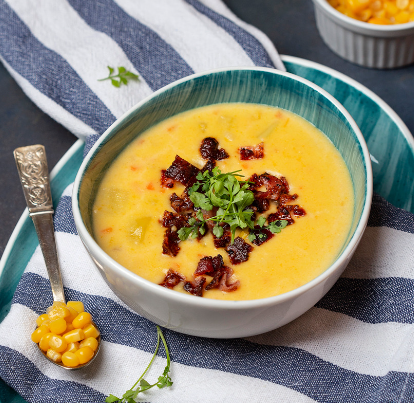 Savor our Smoked Paprika Corn Chowder, enriched with Folona's Bone...
