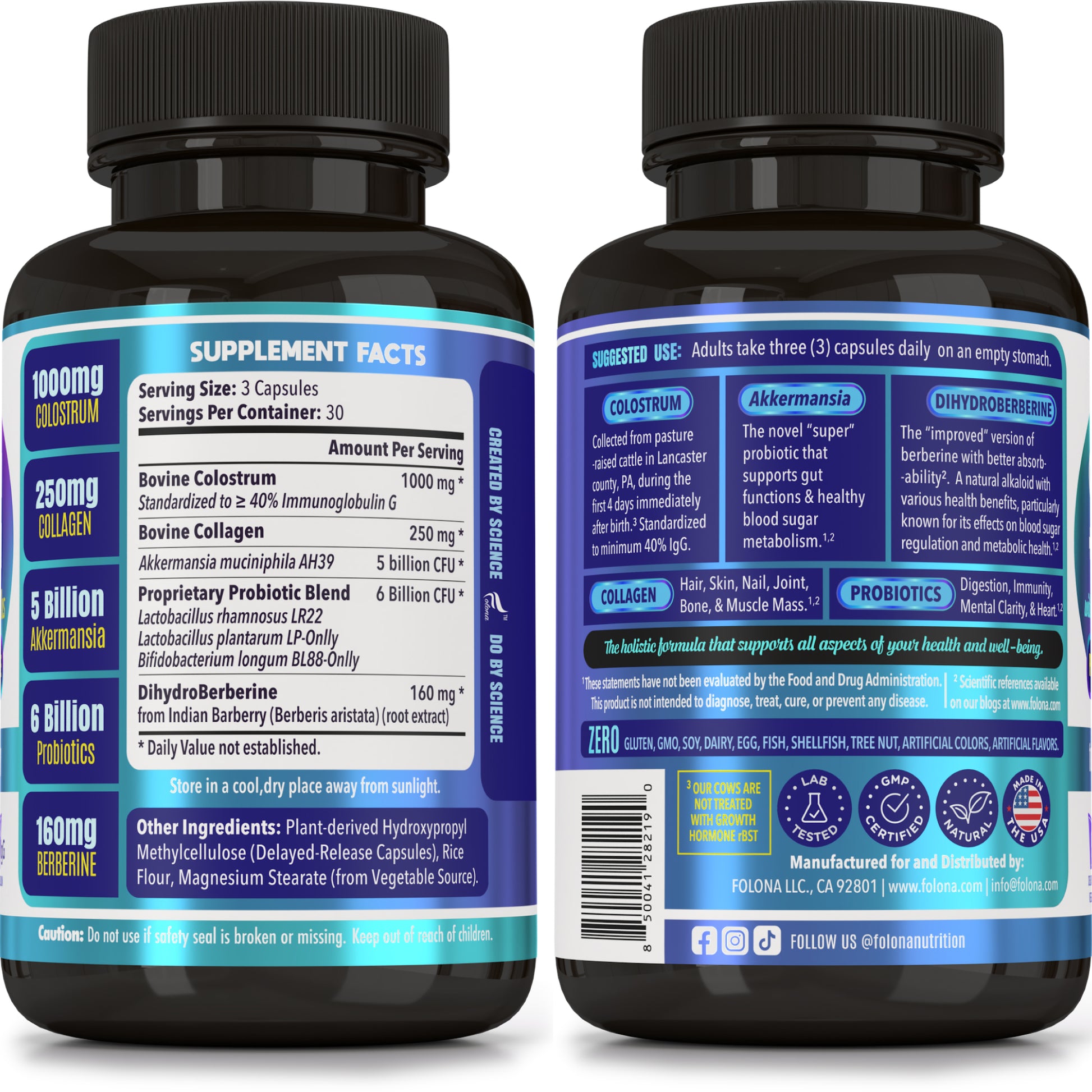 11 Billion CFUs of 4 different strains of probiotics to support digestion, immunity, mental clarity, and heart healthPasteurized