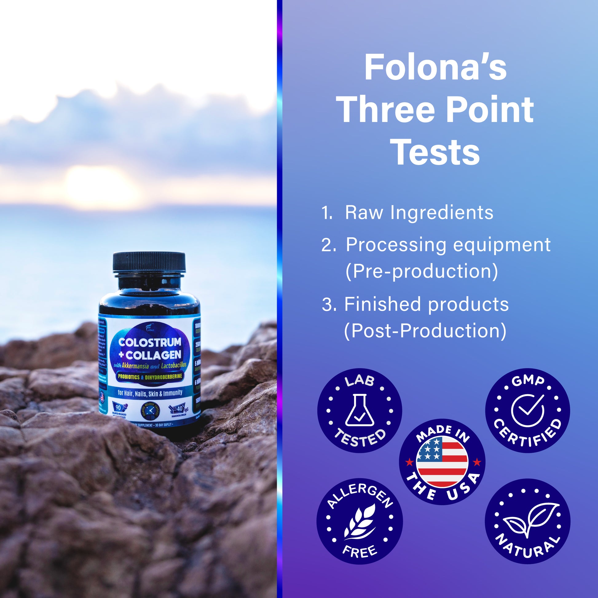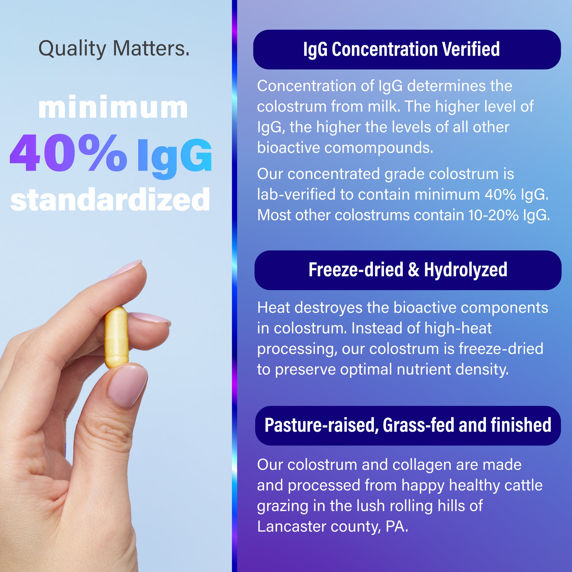 From pasture-raised cattle in Lancaster county, PA.Colostrum tandardized to minimum 40% IgG
